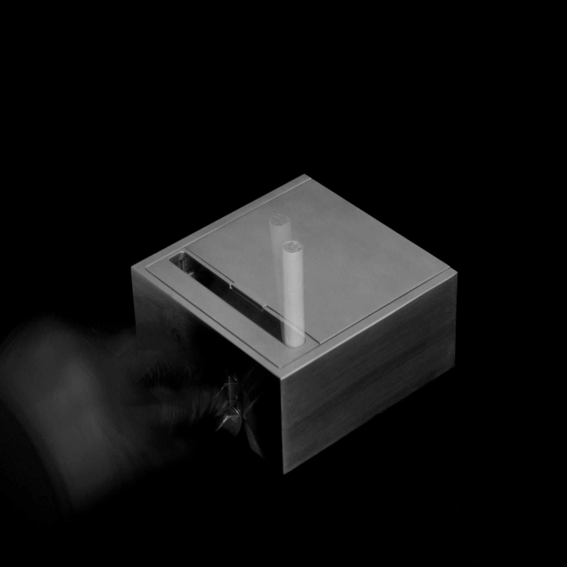 '003' is an upgraded version of the existing bolt cigarette box. It is designed to store and use when you smoke indoors. When you press the nut handle on the front of the box, the cigarettes stored inside are lifted up one by one. The internal slope has been modified by increasing the slope so that the cigarette inside can come down more smoothly. In addition, it has been changed to enable disassembly and assembly to solve problems when they occur.